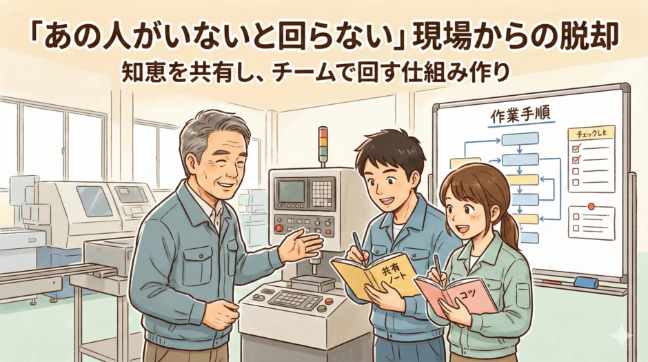いきなり全部を変える必要はありません。まずは、ベテランの横について作業を見せてもらう。ちょっとしたコツをメモに書き留める。週に一度、工夫を共有する時間を作る。そんな小さな一歩から始めてみてはいかがでしょうか。