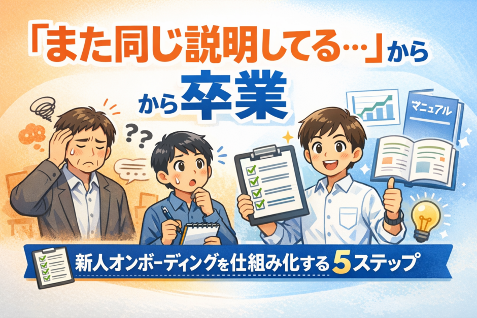 この記事では、特別なスキルがなくても実践できる「新人オンボーディングの仕組み化」について、具体的なステップでお伝えします。一度仕組みを作れば、次の新人からは驚くほどスムーズに立ち上がるようになりますよ。